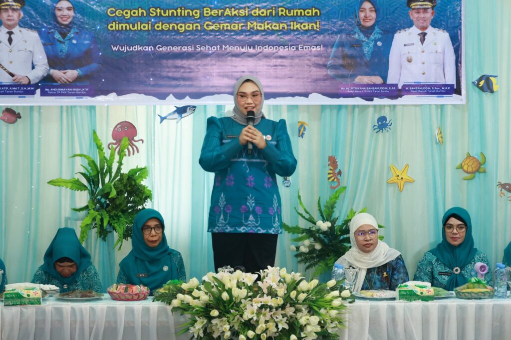 Ketua TP PKK Kabupaten Tanah Bumbu, Andi Irmayani Rudi Latif, yang hadir langsung dalam kegiatan tersebut, menegaskan bahwa ikan memiliki peran besar dalam menunjang tumbuh kembang anak.