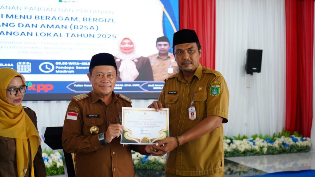BATULICIN – Pemerintah Kabupaten Tanah Bumbu (Pemkab Tanbu) kembali memperkuat komitmennya dalam meningkatkan kualitas konsumsi pangan masyarakat melalui kegiatan Sosialisasi Menu Beragam, Bergizi, Seimbang, dan Aman (B2SA) Tahun 2025. Kegiatan ini dibuka secara resmi oleh Bupati Tanah Bumbu, HM. Andi Rudi Latif, melalui Asisten Perekonomian dan Pembangunan, Eryanto Rais, pada Selasa (11/11/2025) di Pendopo Kantor Bupati Batulicin.