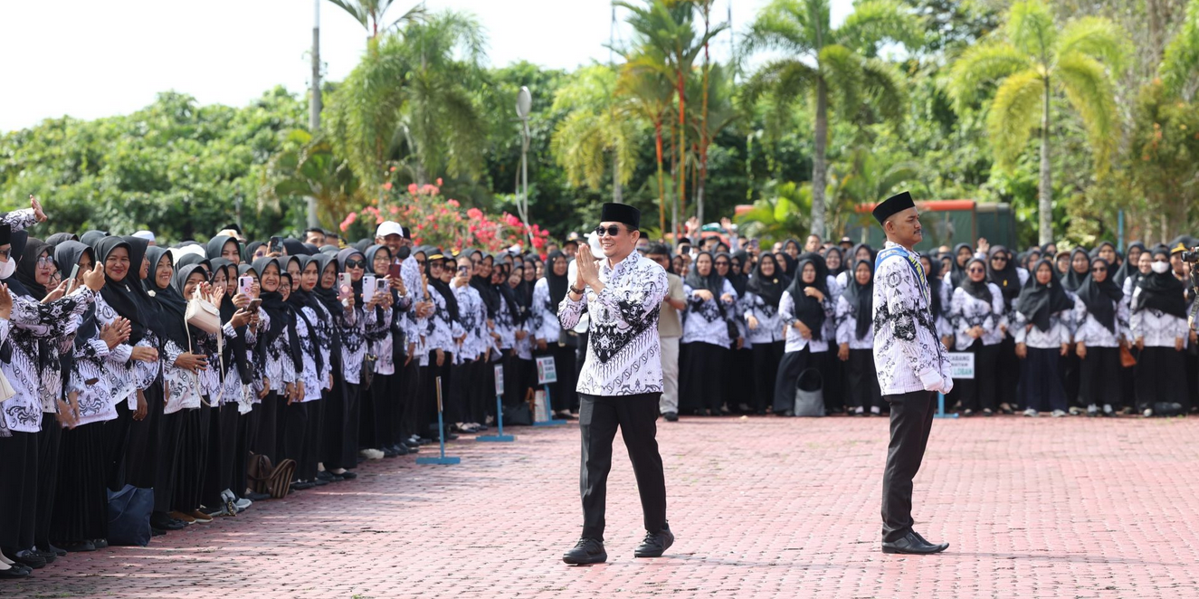 Pernyataan tersebut disambut tepuk tangan meriah dan penuh haru dari para guru yang hadir, sebagai wujud apresiasi atas perhatian dan komitmen pemerintah daerah terhadap kesejahteraan insan pendidikan di Bumi Bersujud.